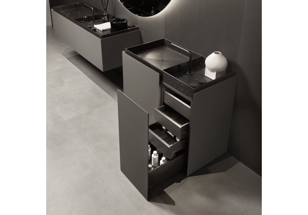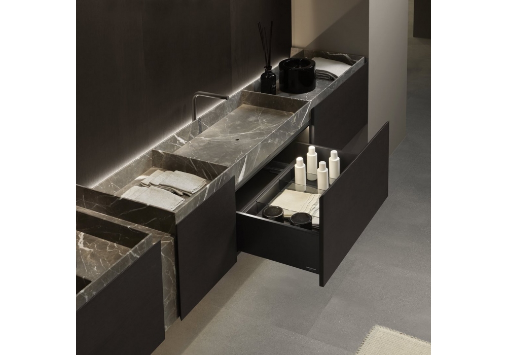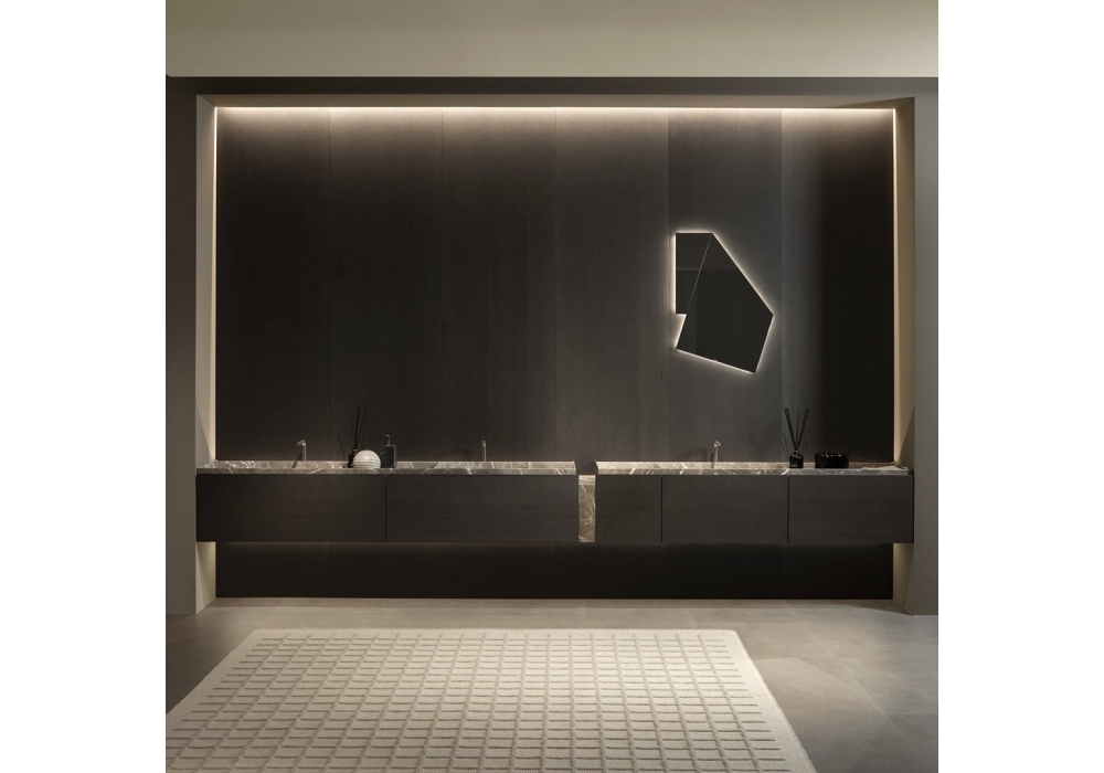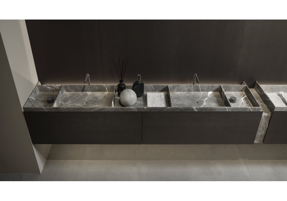 Nabatei conçu par Antonio Lupi est un système de vasques et de meubles en marbre alliant simplicité, élégance et fonctionnalité. Ils se distinguent par des lignes géométriques épurées et une faible épaisseur qui soulignent le caractère unique de la pierre. Chaque vasque peut accueillir robinetterie, accessoires ou fonctions principales du lavabo, tandis que des meubles suspendus ou à poser complètent des compositions légères et harmonieuses. La collection comprend des vasques cubiques, sur pied et à poser, en Cristalmood ou en marbre, offrant des solutions modulaires et des configurations personnalisables pour chaque projet.