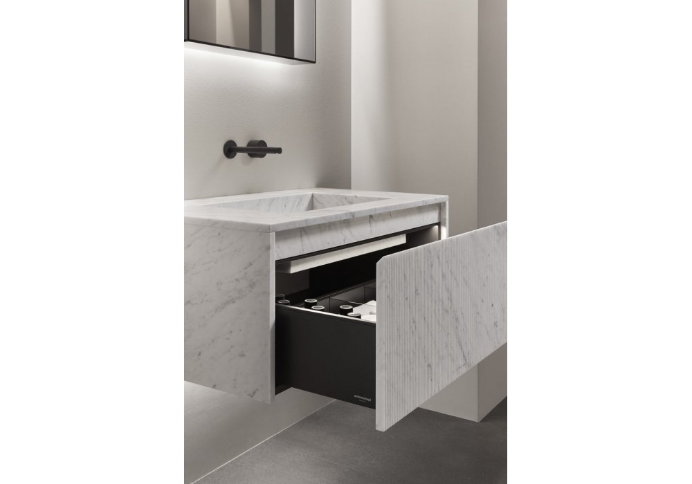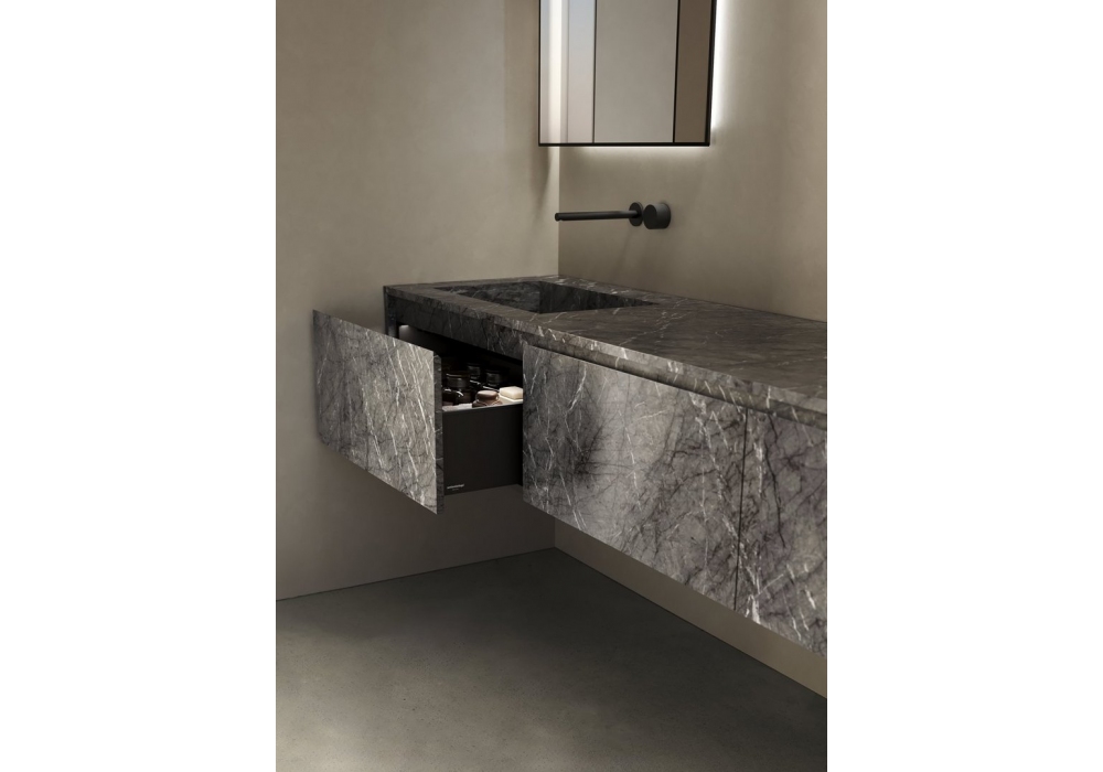 Piana_Stone conçu par Nevio Tellatin pour Antonio Lupi est un système modulaire en pierre alliant design essentiel et fonctionnalité. La version pierre met en valeur l'excellence du matériau, avec ses nuances et ses teintes naturelles, conférant au projet une simplicité extraordinaire. Son noyau technique modulaire permet de multiples combinaisons dimensionnelles, tandis que le profil de poignée intégré simplifie l'ouverture de la porte. Un design robuste et intemporel, capable de s'intégrer à tous les espaces tout en devenant un protagoniste discret.