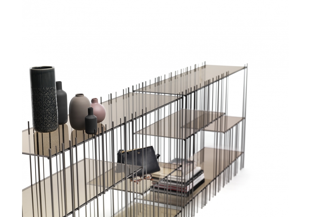Metrica conçue par Ctrlzak Studio pour Mogg est une console réalisée avec une structure en métal, des pieds réglables et des étagères en verre. Disponible en différentes finitions.
