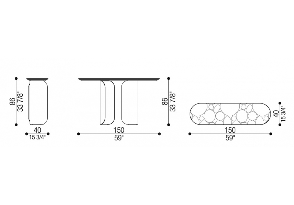 Gabriel conçue par Castello Lagravinese Studio pour Opera Contemporary est une console avec dessus en marbre, disponible en différentes finitions et base en métal.