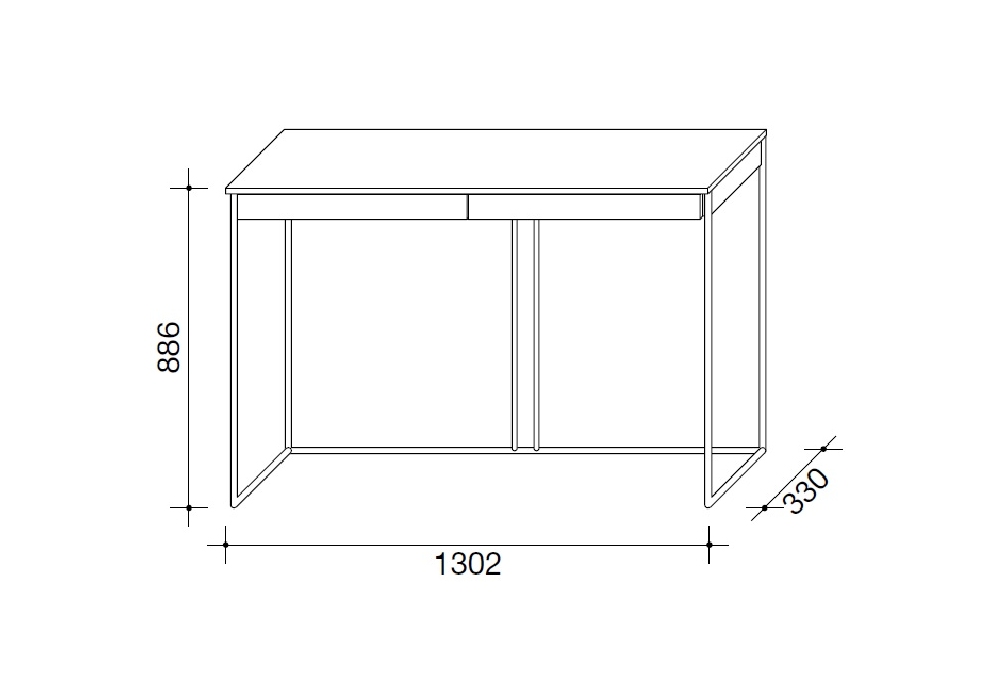 Ella conçue par David Lopez Quinconces pour Lema est une console avec plateau et tiroirs en bois, naturel ou laqué et structure métallique en finition bronze patiné.