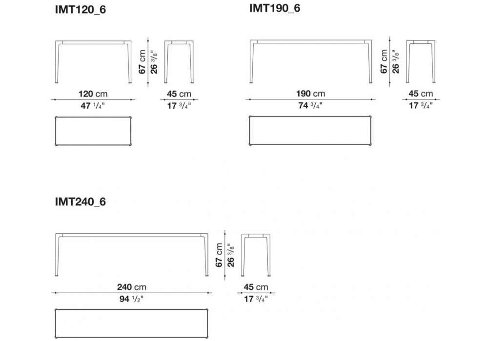 | Dimensions | 120 x 45 x H 67 cm; 190 x 45 x H 67 cm; 240 x 45 x H 67 cm. |