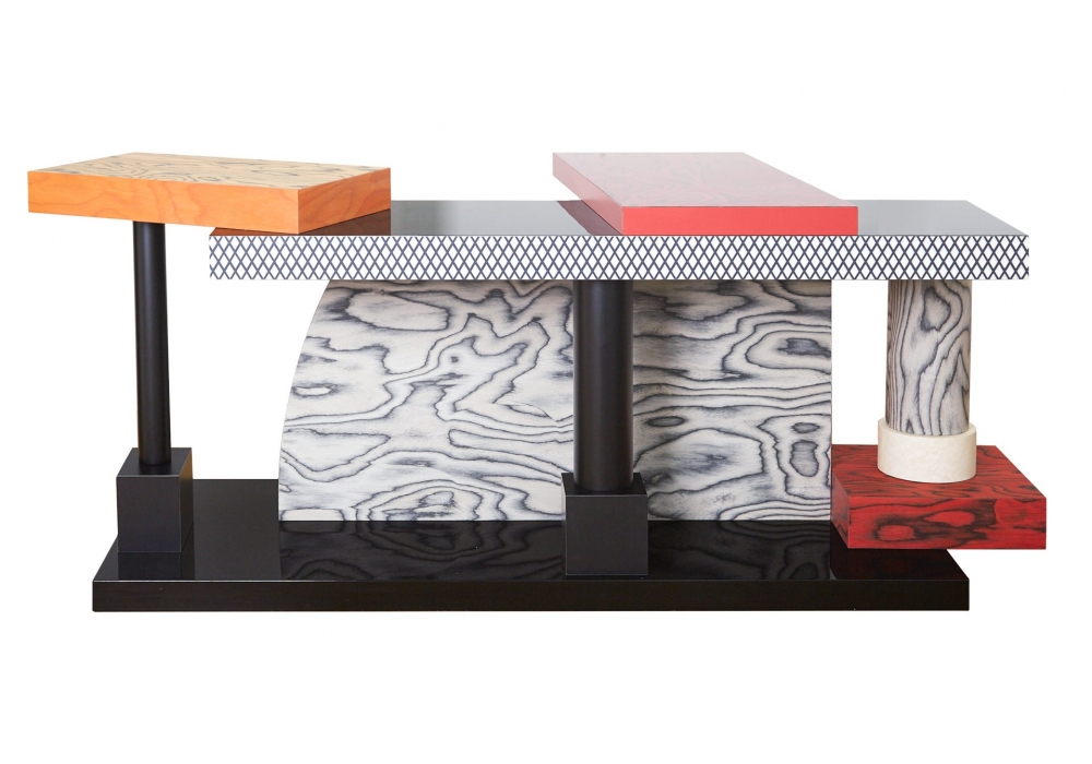 Tartar conçue par Ettore Sottsass pour Memphis Milano est une console en bois précomposé et stratifié plastique.