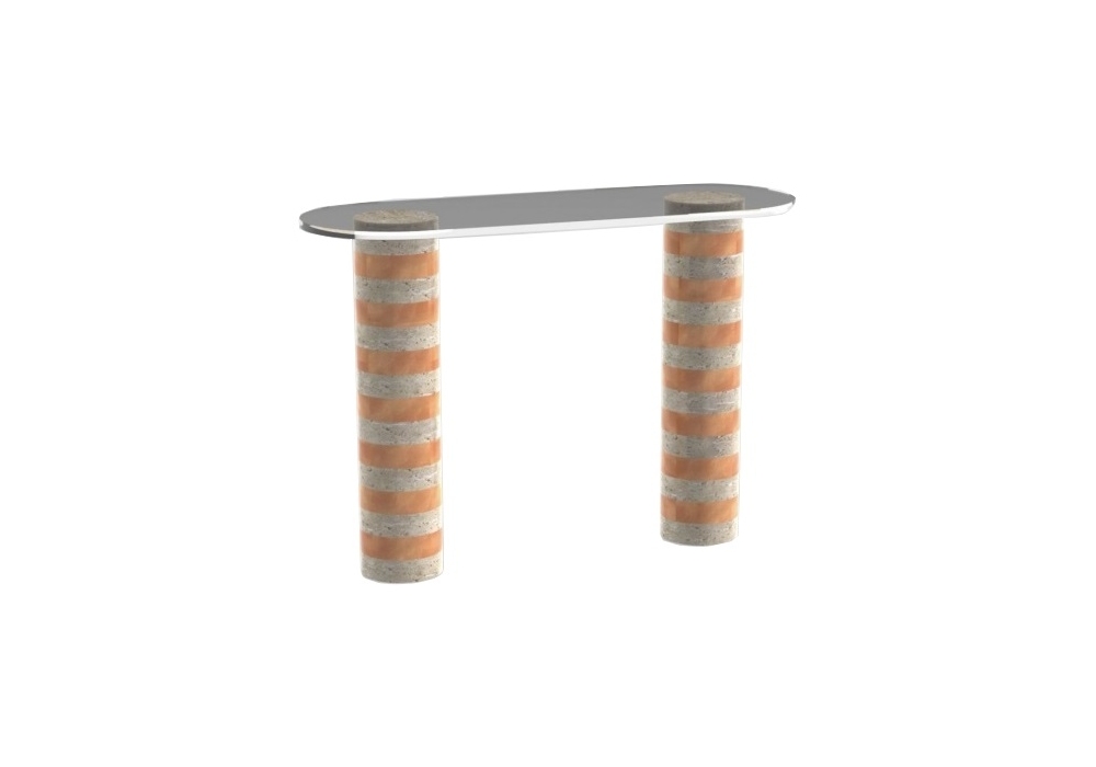 Architexture Console conçue par Patricia Urquiola pour Budri est une console réalisée avec deux pieds rayés en marbre et plateau en verre trempé extra clair. Disponible en 2 finitions.