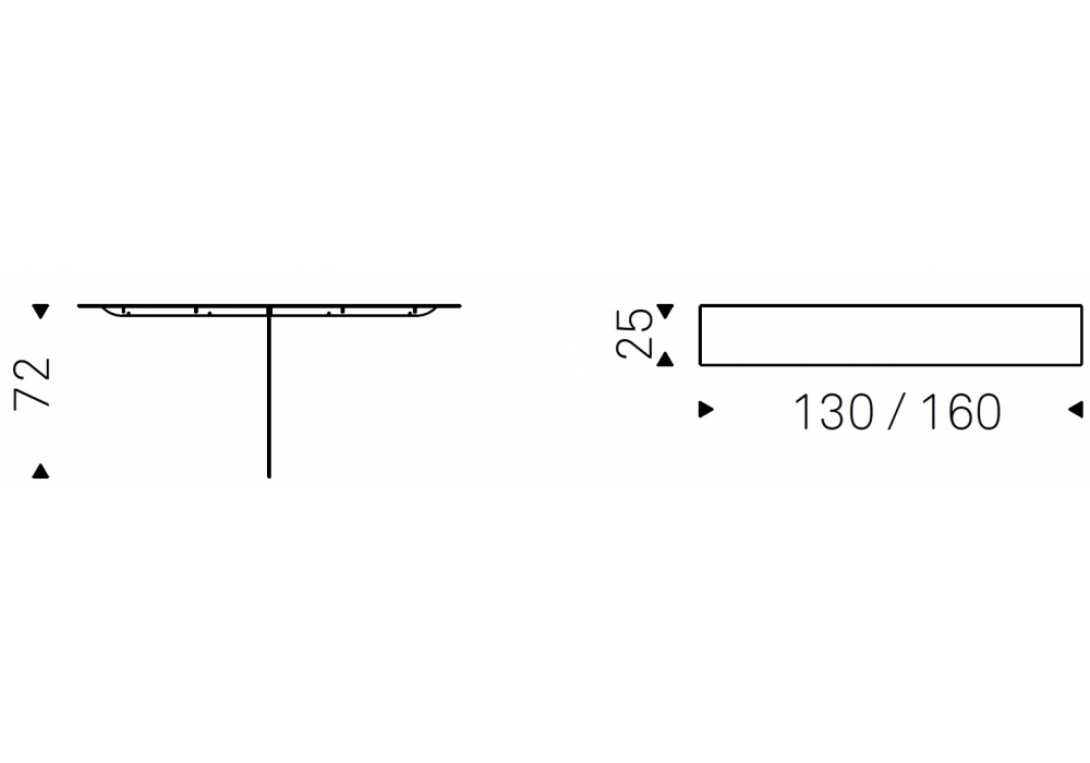 | Dimensions | 130 x 25 x H 72 cm; 160 x 25 x H 72 cm. |