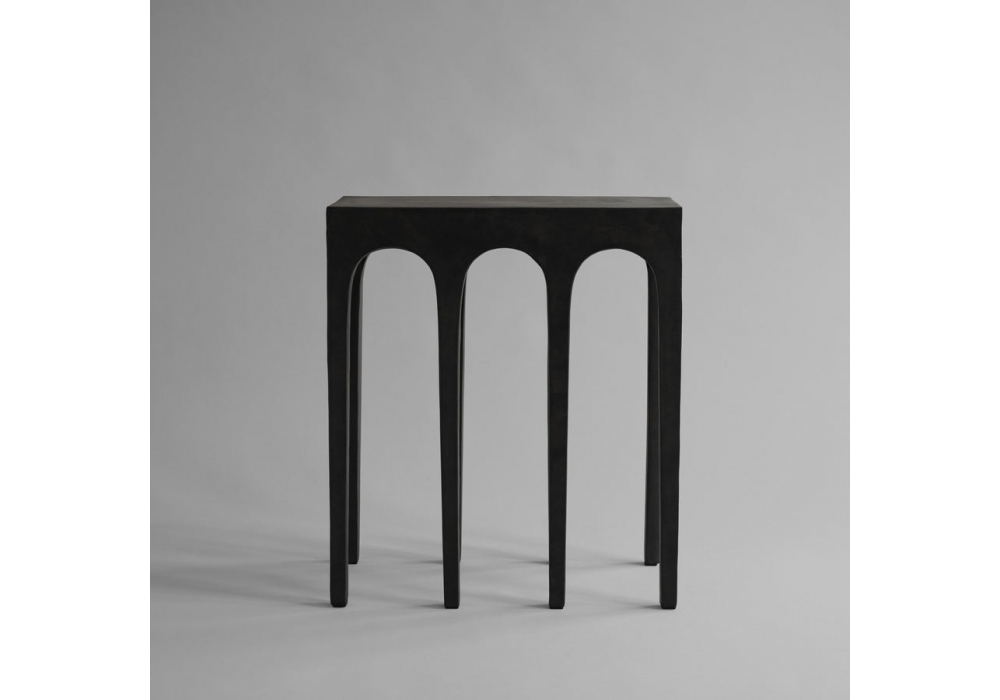 Bow conçue par Kristian Sofus Hansen & Tommy Hyldahl pour 101 Copenhagen est une console en fibre de ciment, disponible en finition café.