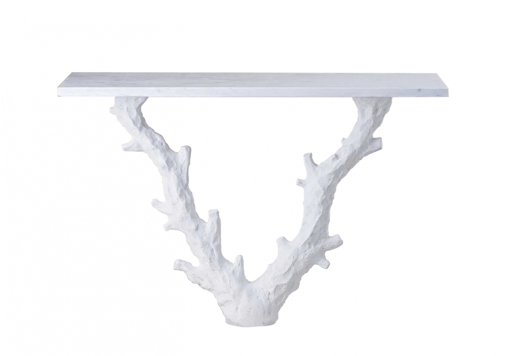 Twig conçue et produite par Porta Romana est une console quadrangulaire avec structure en acier forgé peint. Le plateau est en marbre ou en pierre.