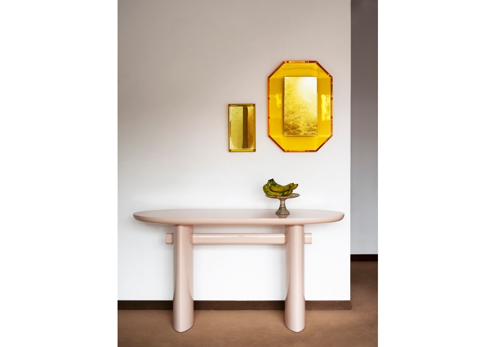 Torii Love conçue par Studiopepe pour Tacchini est une console dont le design rappelle les portails japonais traditionnels. Disponible en différentes finitions, brillant ou mat.