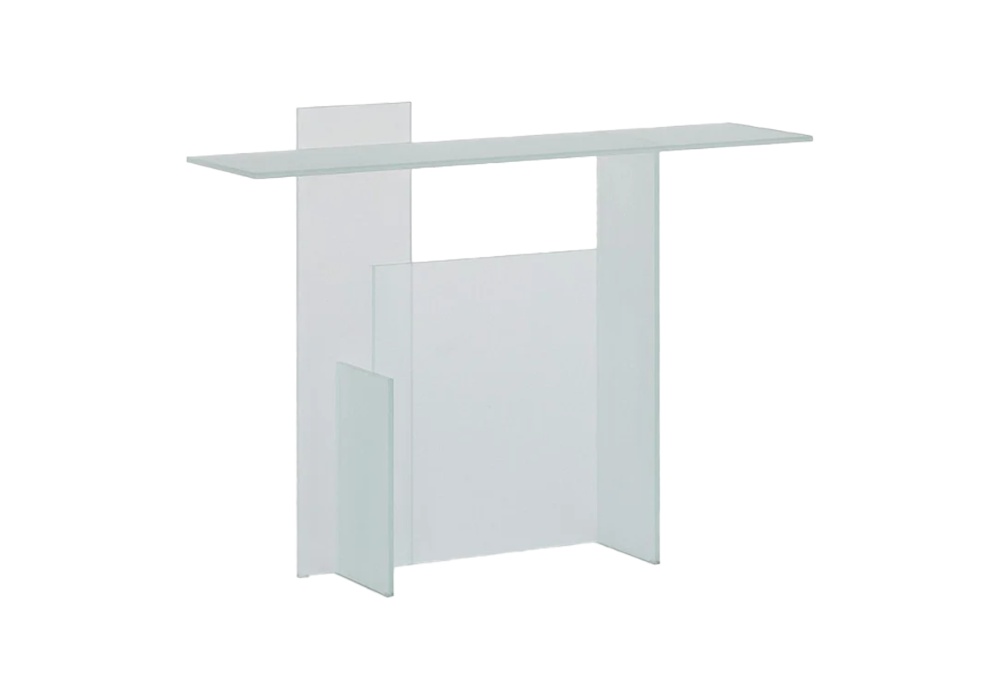 Kazimir conçue par Michael Anastassiades pour Glas Italia est une console entièrement réalisée en verre spécial dépoli à l'acide vert ou trempé extralight. Les différentes feuilles superposées sont ancrées les unes aux autres selon un procédé de collage UV. Kazimir est disponible en différentes finitions.