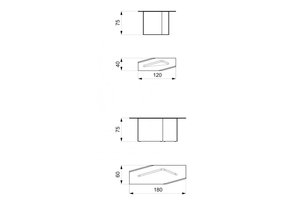 | Dimensions | 120 x 40 x H 75 cm; 180 x 60 x H 75 cm. |
