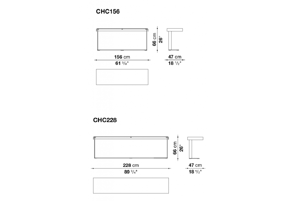 | Dimensions | 156 x 47 x H 66 cm; 228 x 47 x H 66 cm. |