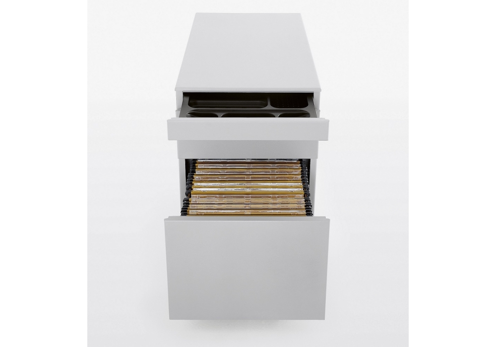 Bureau conçu par Bluezone pour Kristalia est un meuble à tiroirs en aluminium verni. Élément primordial pour aménager un bureau, que ce soit au travail ou à la maison, le caisson à tiroirs métallique Bureau par Kristalia peut facilement être déplacé n’importe où, grâce à ses roulettes pivotantes. Le caisson à tiroirs métallique Bureau est équipé d’un compartiment aménagé très pratique. Ce meuble est disponible soit équipé uniquement de tiroirs soit avec tiroirs et range-documents.