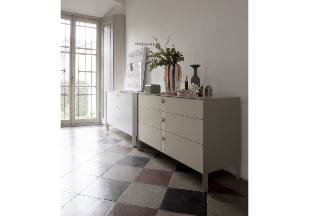 Another Day conçue par Silvano Pierdonà pour Capodopera est une commode composée d'éléments joints à 45° et assemblés manuellement dans une finition laquée mate. L'ouverture se fait par push-pull, ou via des boutons 3D.