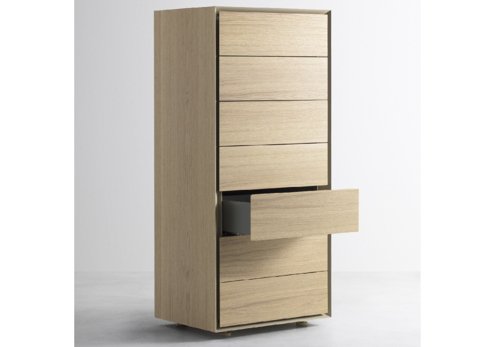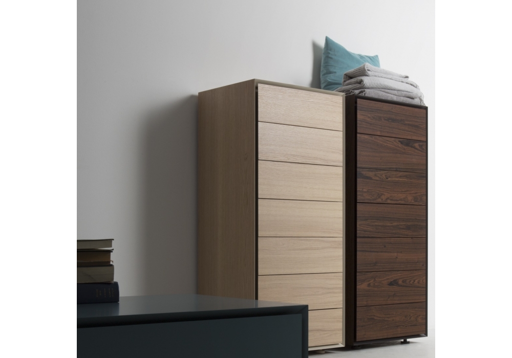 Quarantacinque conçu par Silvano Pierdonà pour Capodopera est une commode haute en finition laquée brillante ou mate ou en différents bois. Disponible en 3 dimensions.
