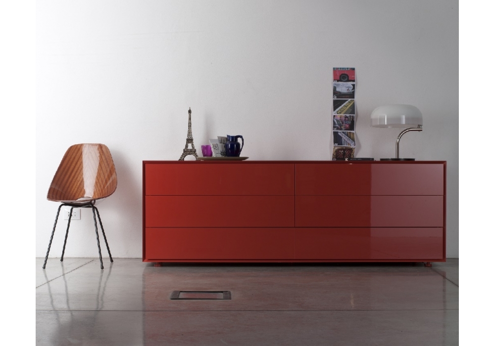 Quarantacinque conçue par Silvano Pierdonà pour Capodopera est une commode en finition laquée mate, brillante ou en différentes finitions de bois.