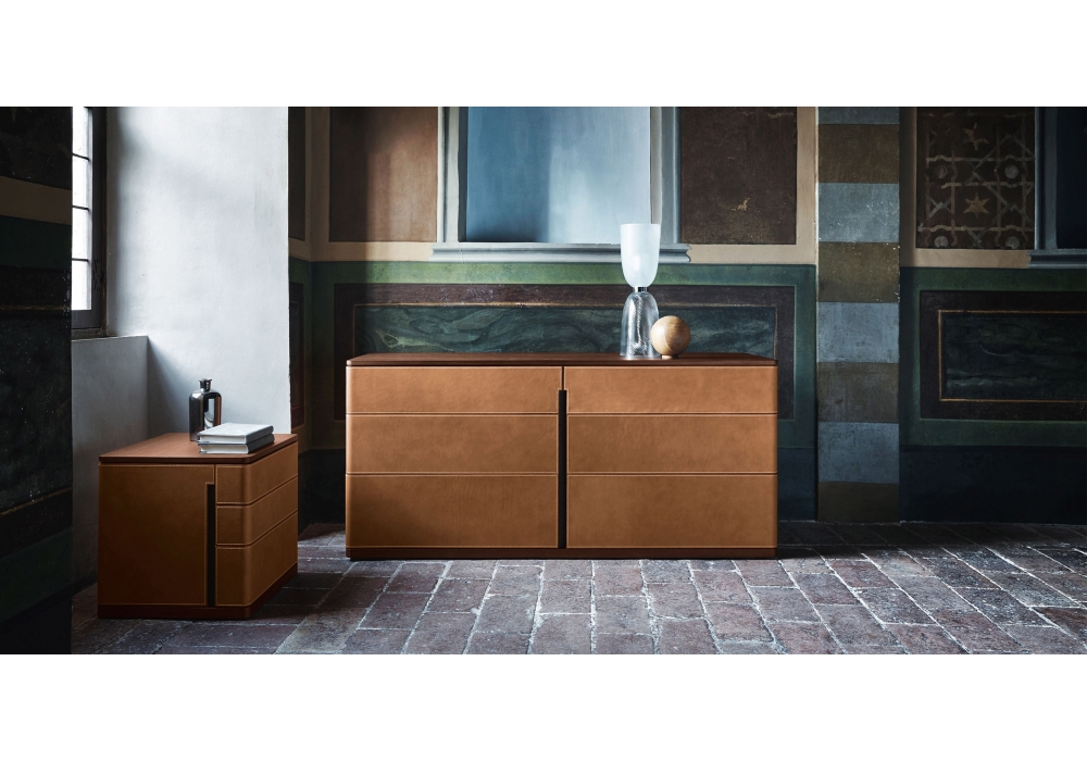 Fidelio Notte is a chest of drawers designed by Roberto Lazzeroni for Poltrona Frau. Deliberately lean design, precious materials. Functional details become highly characteristic aesthetic elements, such as the recessed handles that provide