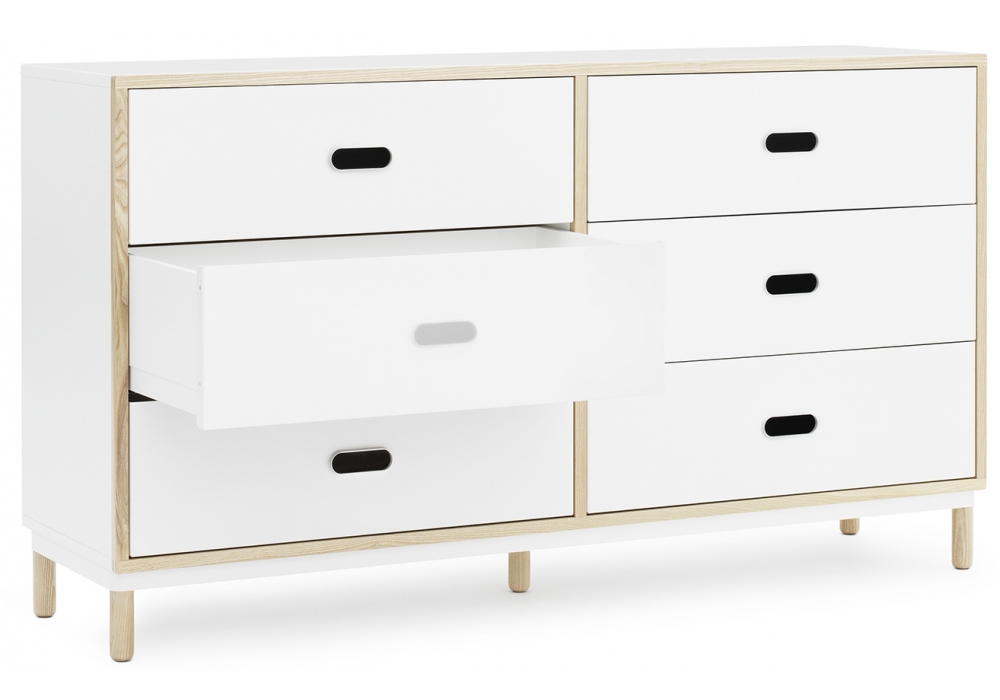 Kabino conçue par Simon Legald pour Normann Copenhagen est une commode, réalisée en bois de frêne, MDF et aluminium. Les deux blocs tiroirs sont des solutions parfaites pour ranger des objets dans le salon et la chambre et tous les tiroirs sont équipés d'une fonction soft-close pour une fermeture douce et silencieuse. Disponible en deux finitions et modèles.