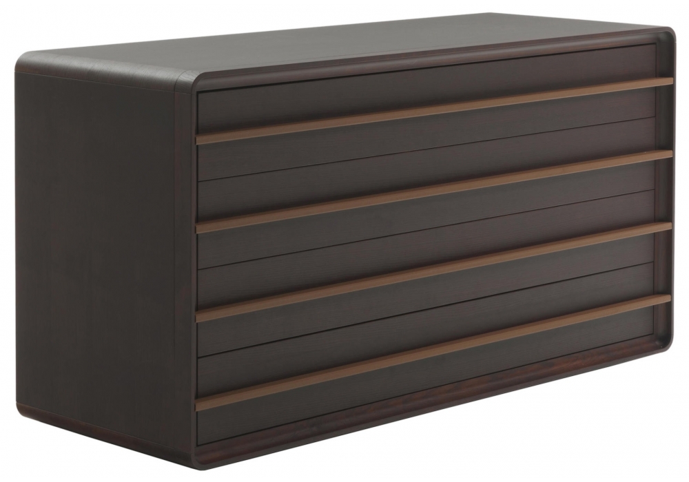 Aura conçue par Marelli & Molteni pour Porada est une commode en bois disponible en différentes finitions et poignées en cuir.