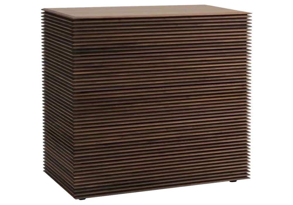 Riga 1 conçue par T. Colzani pour Porada est une commode avec quatre tiroirs avec structure en noyer canaletta massif ou laqué mat pore fermé en différentes finitions. La collection Riga comprend également une table de chevet, un buffet et un meuble TV.