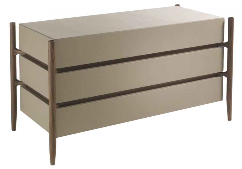 Regent 1 conçue par T. Colzani pour Porada est une commode avec structure en noyer canaletta massif. Les trois tiroirs avec fermeture douce sont revêtus en cuir. Disponible également en une version entièrement en bois.