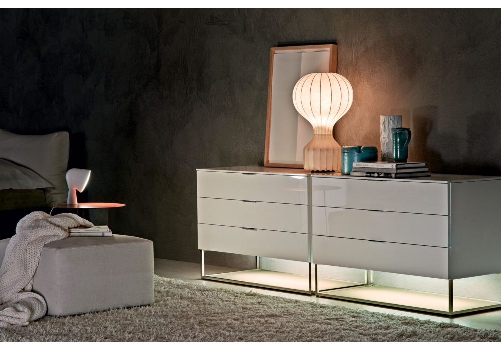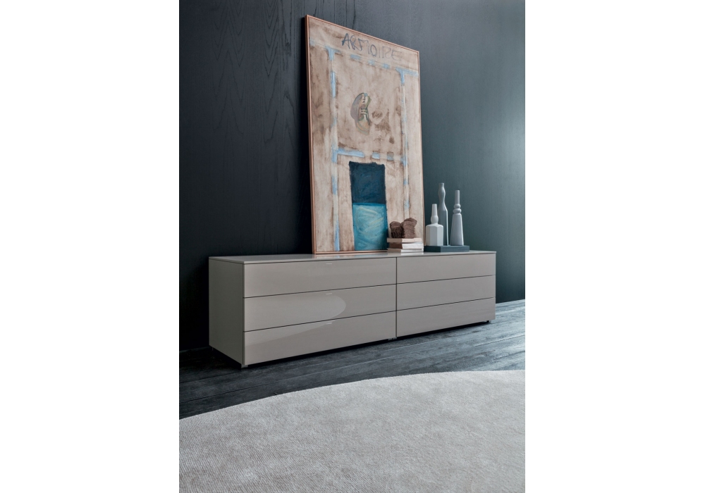 909 conçue par Luca Meda pour Molteni&C est une commode à ouverture par pression ou avec poignée. Disponible en différents modèles et en différentes finitions brillantes ou mates.