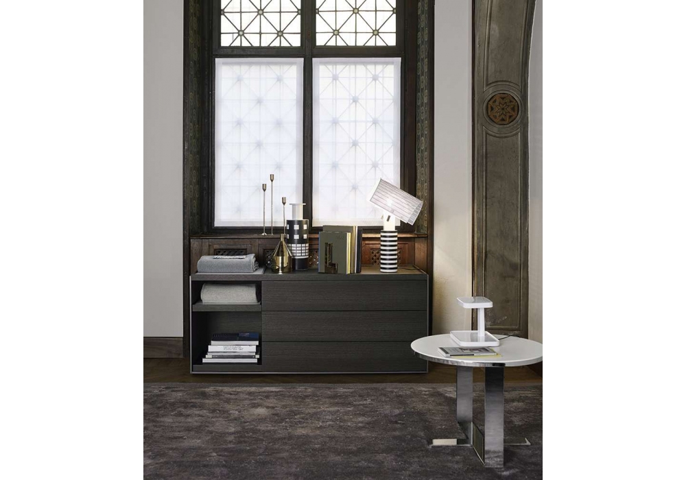 Surface conçue par Vincent Van Duysen pour B&B Italia est une commode disponible en deux dimensions. Structure, façade de tiroir, étagère fixe et extractible en chêne gris, chêne clair brossé, chêne noir brossé ou chêne fumé. Côtés et socle verni nickel bronzé. Insert en panneau de fibre de bois MDF verni satiné ou brillant.