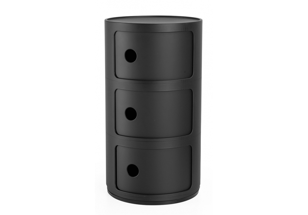 Componibili Recycled conçu par Anna Castelli Ferrieri pour Kartell est un conteneur réalisé en technopolymère thermoplastique recyclé. Disponible en différentes finitions et dimensions.