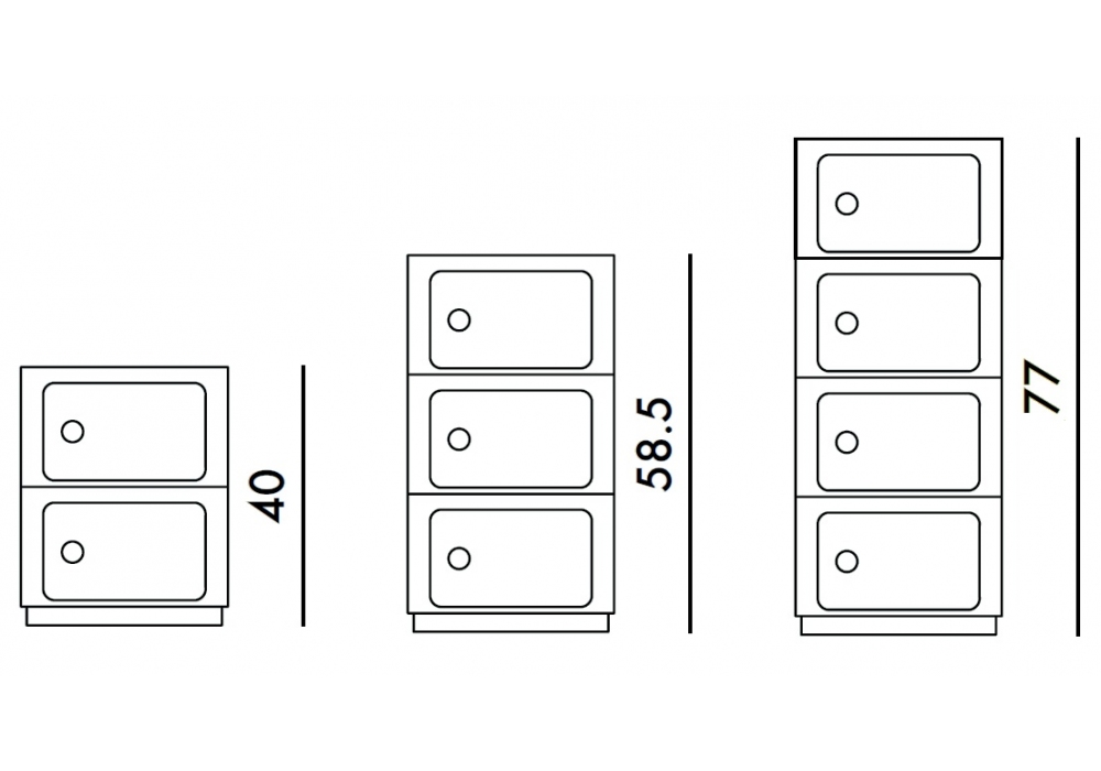 | Hauteur | 40 cm; 58.5 cm; 77 cm. |