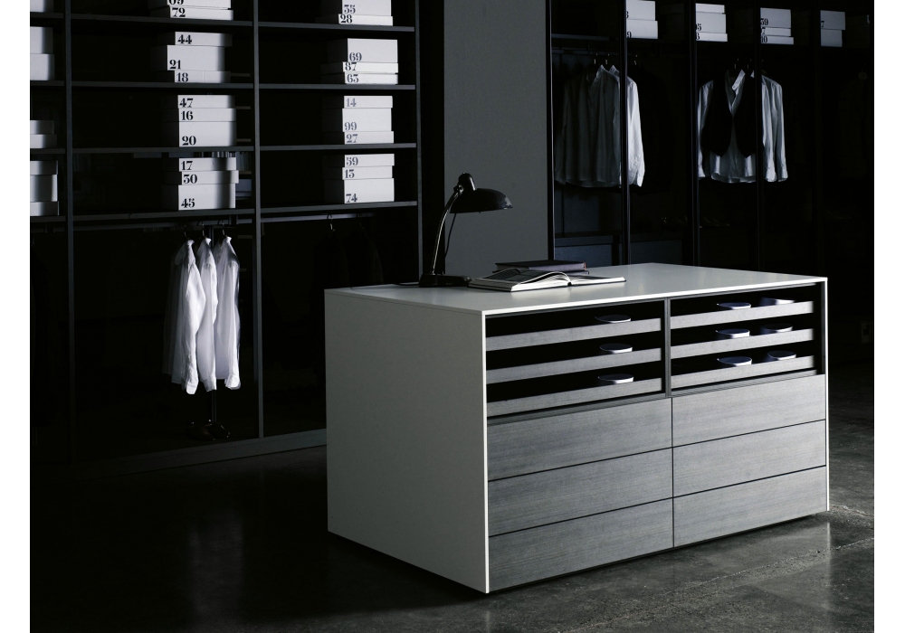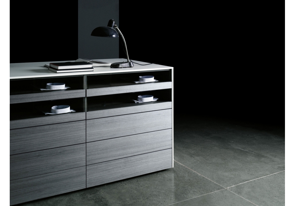 Isola conçue par Piero Lissoni et CRS Porro est une commode modulaire, disponible en 2 hauteurs et 3 largeurs. La commode Isola se compose au gré des envies en choisissant parmi les équipements proposés : tiroirs en bois ou en verre, plateaux amovibles, compartiments ouverts. Différentes finitions laquées mates et mélaminées sont disponibles.