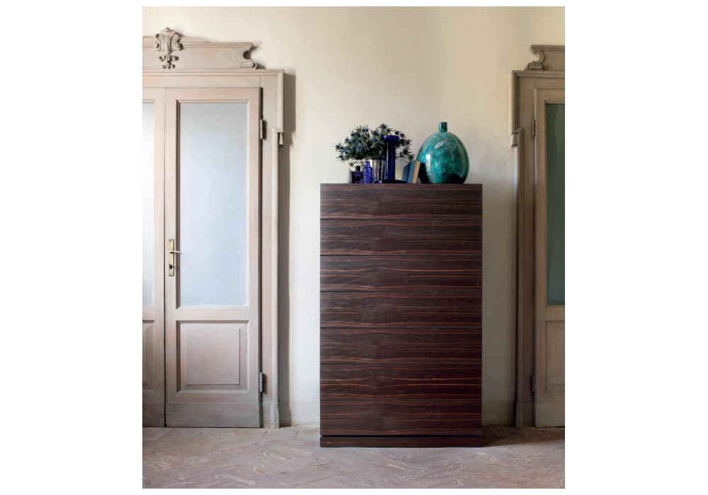Segno conçu par Silvano Pierdonà pour Capodopera est une commode haute avec finition brillante, laquée mate ou bois.