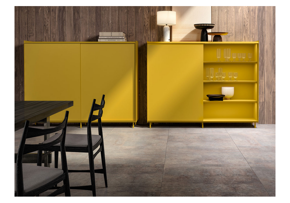 Flyer conçu par Silvano Pierdonà pour Capodopera est un meuble avec structure en MDF laqué mat. Disponible en différents modèles.