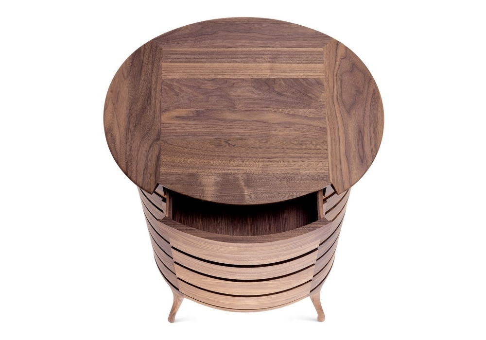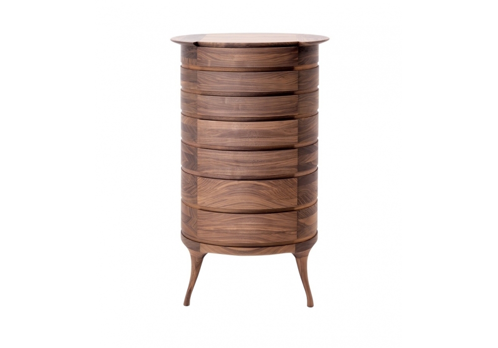 Bandeja by Ceccotti Collezioni is an ovoid shaped chest of drawers with 7 drawers of different sizes, made in solid American walnut.