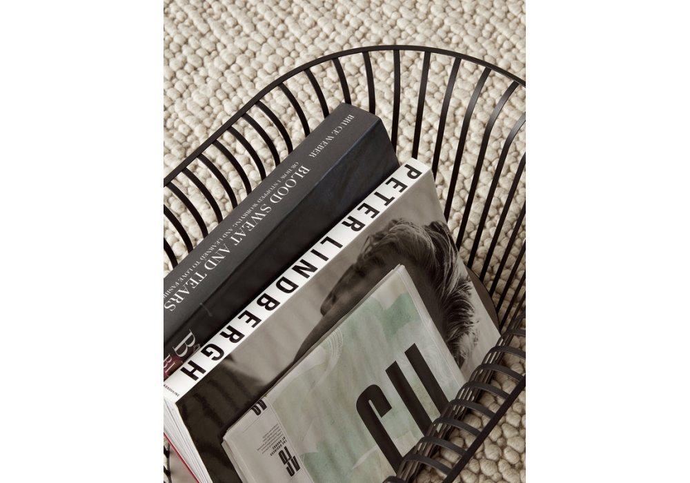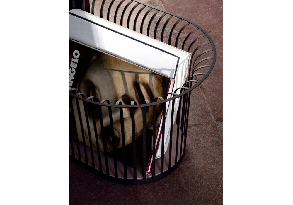 Ribbon conçu par Norm Architects pour Audo Copenhagen est un panier en acier enduit de poudre, fond recouvert de cuir.