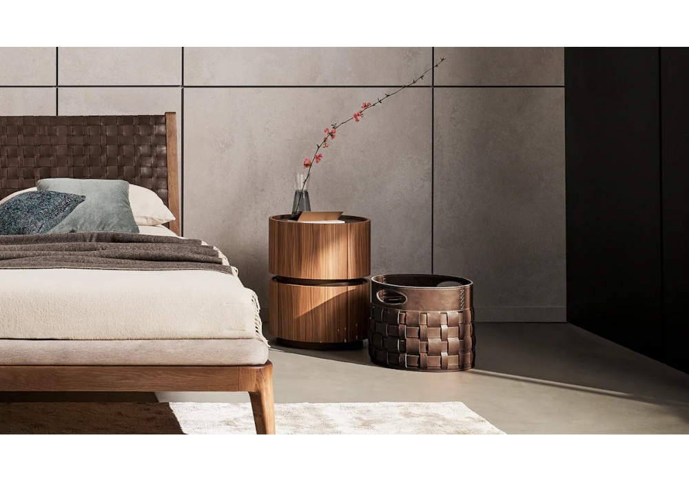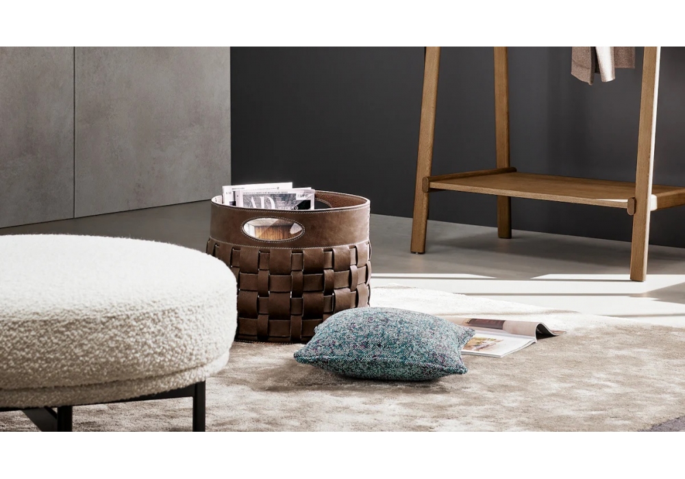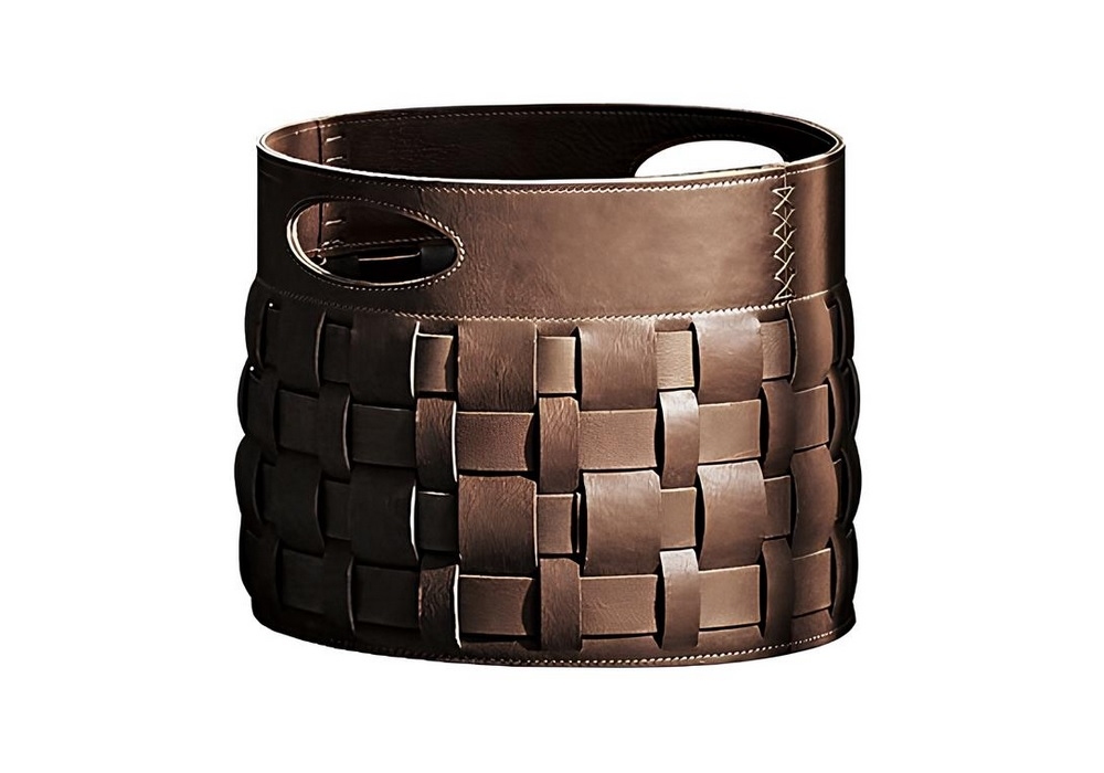 Roger conçu par Bonaldo Lab pour Bonaldo est un panier recouvert de cuir finition marron foncé.