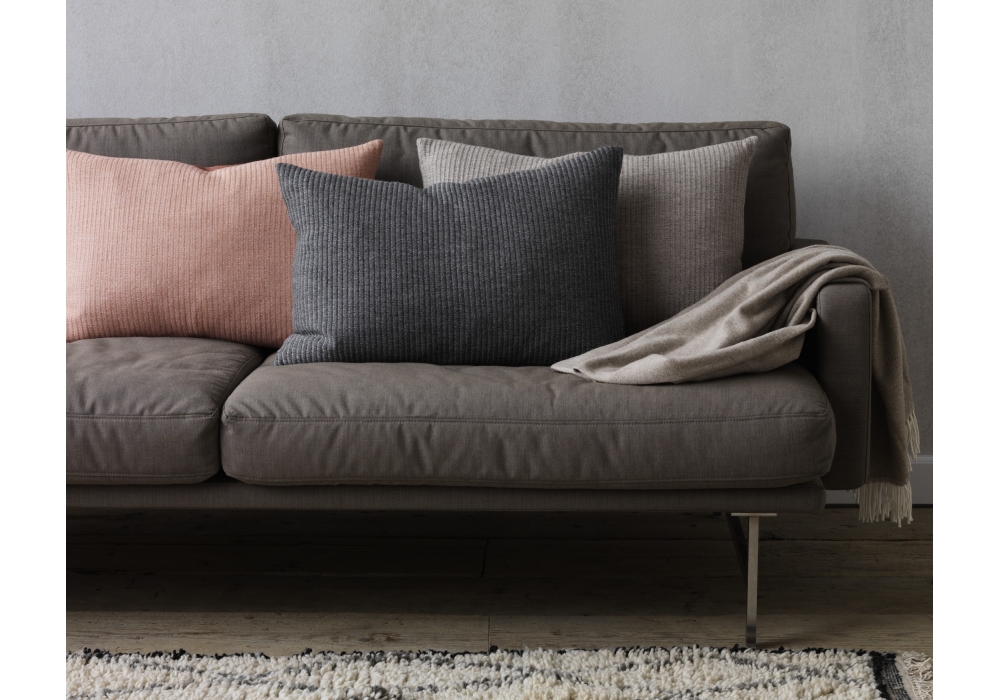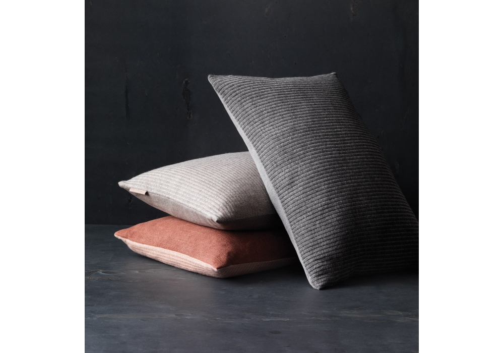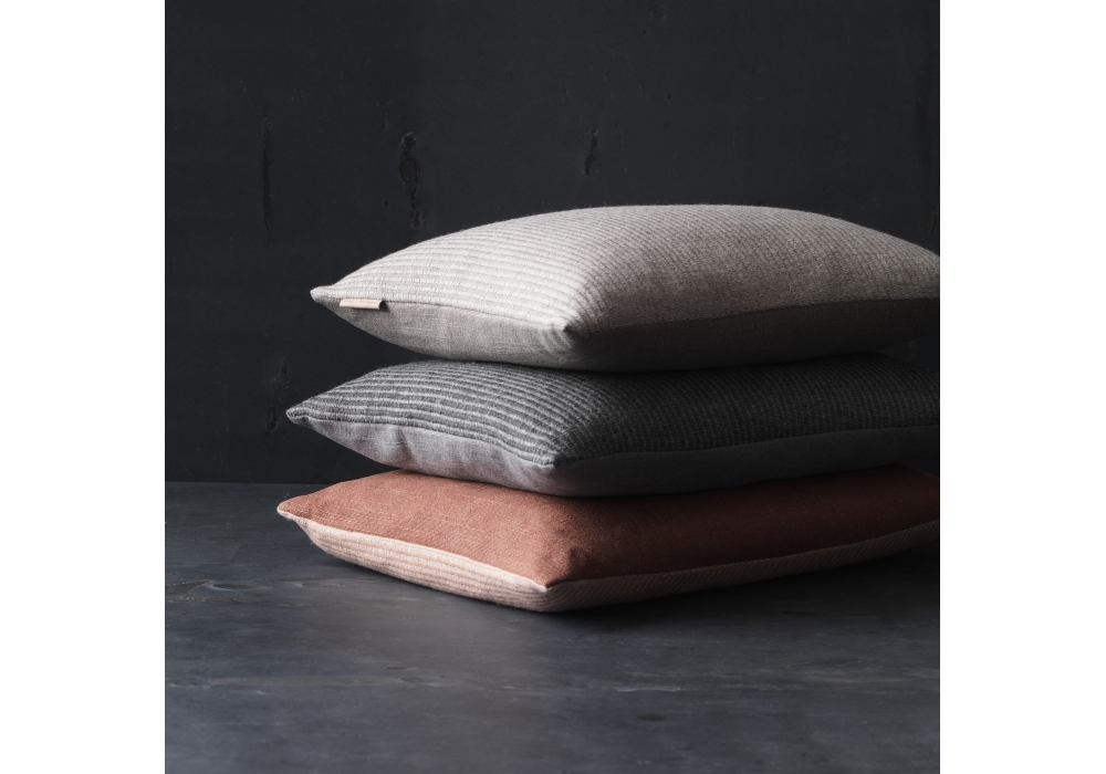 Le coussin de lin conçu par AiaYu pour Fritz Hansen est disponible en deux couleurs: Anthracite and Oat.