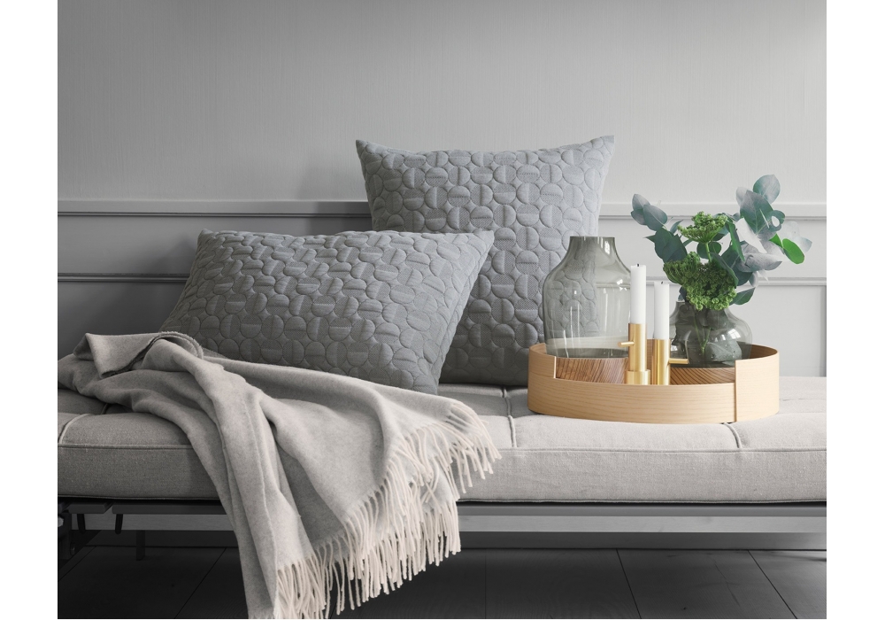 Le coussin conçu par Arne Jacobsen pour Fritz Hansen est realisée de laine avec motif Vertigo. Disponible en deux dimensions.