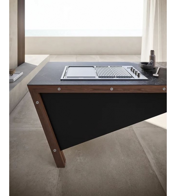 XX conçue et produite par Modulnova est une île de cuisine avec pieds en bois massif en frêne traité thermiquement, structure en acier et plan de travail en grès, marbre, granit ou pierre, en différentes finitions. Des lavabos et des plaques de cuisson standard peuvent être intégrés ou de la collection Mate, un compartiment de rangement en aluminium noir avec porte battante et lame esthétique avant et arrière personnalisable. Contactez notre service client pour configurer votre îlot de cuisson XX comme vous le souhaitez.