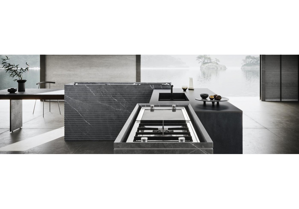Project 02 conçu et réalisé par Modulnova est un système de cuisine composé d'un bloc de cuisson Millerighe Graphite Raw, de bases Skill en grès effet tilleul Dark Depth, comme le plan avec vasque intégrée. La péninsule ASG a un profil extérieur en bois de frêne massif traité thermiquement et une structure en acier inoxydable. Les plaques de cuisson Mate sont autoportantes et comprennent : barbecue, induction et teppanyaki. Chaque élément de ce système peut être réalisé dans différents matériaux et finitions, contactez notre service client pour le configurer selon vos préférences.