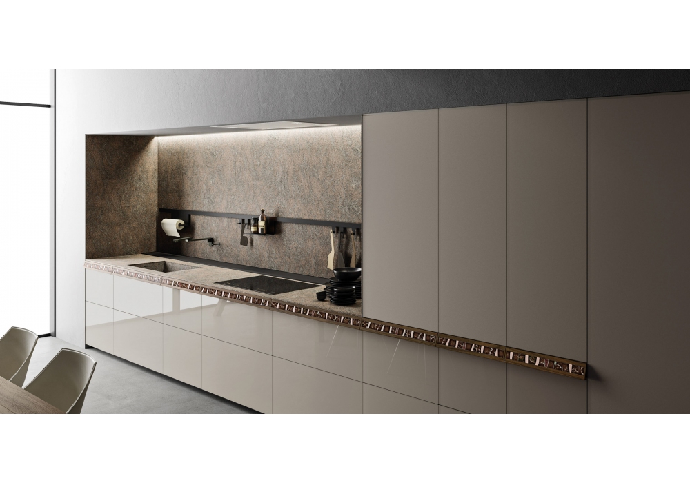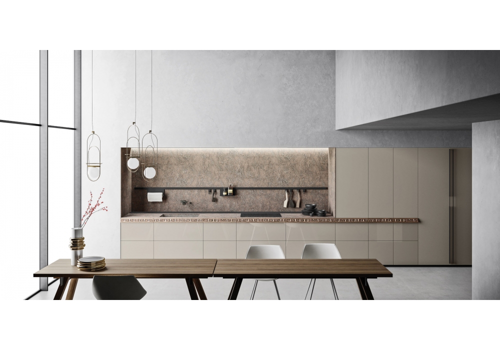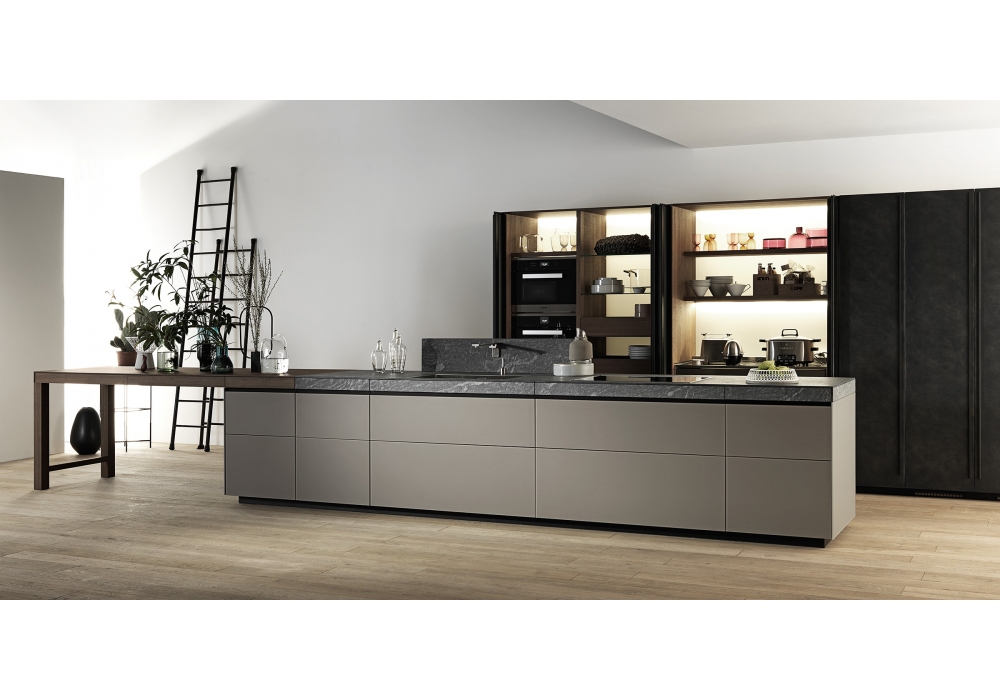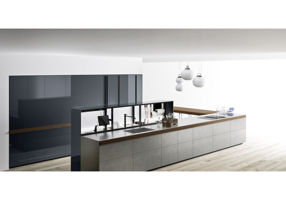 Genius Loci conçu par Gabriele Centazzo pour Valcucine est une cuisine personnalisable avec différentes finitions et processus, pour un résultat sophistiqué et une recherche maximale. Le plateau peut être fait de verre, d'acier, de carbontec, d'acrylique, de pierre ou de bois. Les portes, les unités de mur et les colonnes peuvent être, en stratifié, avec le panneau en Medium Density, le bois, l'acrylique, l'acier et le vitrum.