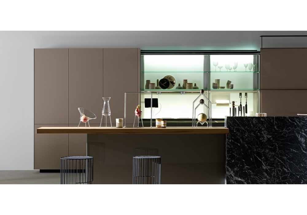 Artematica conçu par Gabriele Centazzo pour Valcucine est une cuisine personnalisable avec différentes finitions et matériaux purs, ce qui ouvre des solutions et des combinaisons infinies. Le plateau peut être fait d'aggloméré hydrofuge recouvert d'une feuille d'acier, de quartz, d'acrylique, de pierre, de verre, d'acier inoxydable ou de carbontec. Portes, unités de mur et colonnes en stratifié, panneau de Medium Density, MDF, acrylique, ou vitrum.