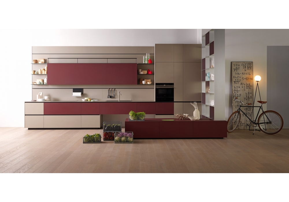 Riciclantica conçu par Gabriele Centazzo pour Valcucine est une cuisine avec structure en aluminium, modulaire et conçu, même avec des éléments suspendus, donnant une liberté maximale de composition et de mouvement. Le dessus peut être fait d'aggloméré hydrofuge recouvert d'une feuille d'acier, de quartz, d'acrylique, de pierre, de verre, d'acier inoxydable ou de carbontec. Portes, éléments muraux et colonnes en stratifié, aluminium ou acier.