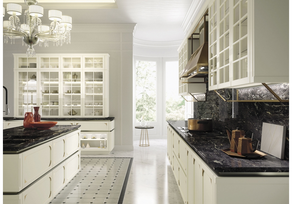 Kelly conçu par Massimo Iosa Ghini pour Snaidero est une cuisine qui rend hommage à l'histoire du mobilier de classe en le réinterprétant de manière contemporaine. Les dessus peuvent être en céramique, en quartz, en acier inoxydable, stratifiés avec le bord d'ABS, le bois, le marbre, le granit ou la solid surface.