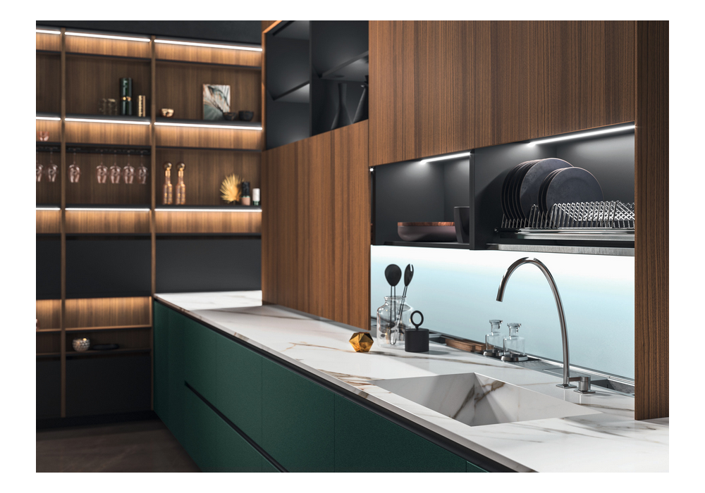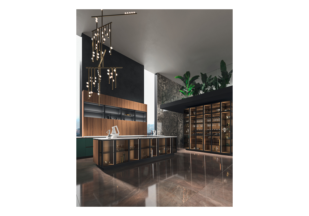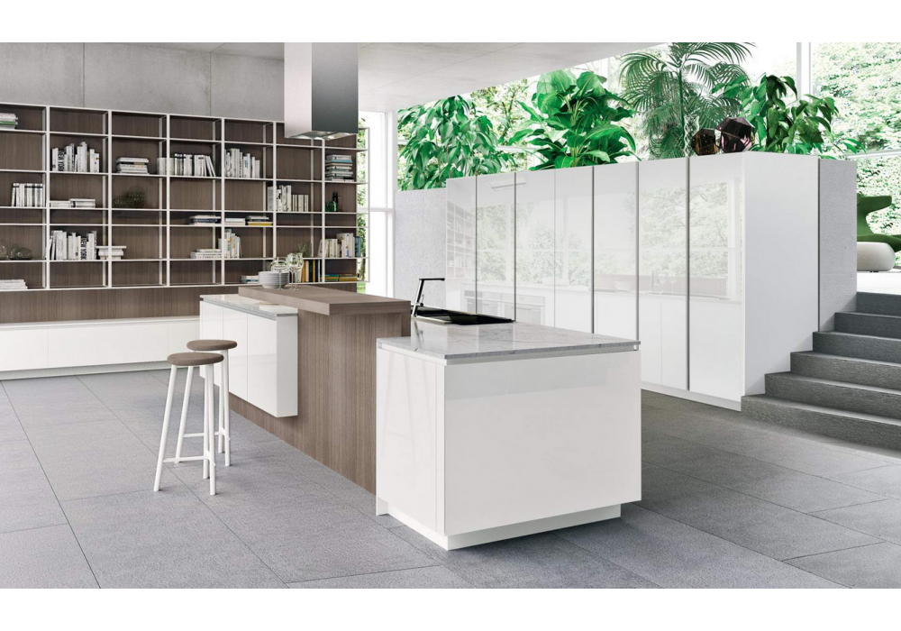 Way conçu par Snaidero est une cuisine est une cuisine avec un design innovant, des lignes minimales et des finitions sophistiquées, destinées au client et à ses choix de logement. Portes disponibles en ABS, MDF, bois massif ou verre trempé. Les plateau peuvent être en aggloméré pour les environnements humides couverts de stratifié d'anti-rayure, aggloméré de silice, solid surface, bois plaqué, acier inoxydable, marbre ou granit.