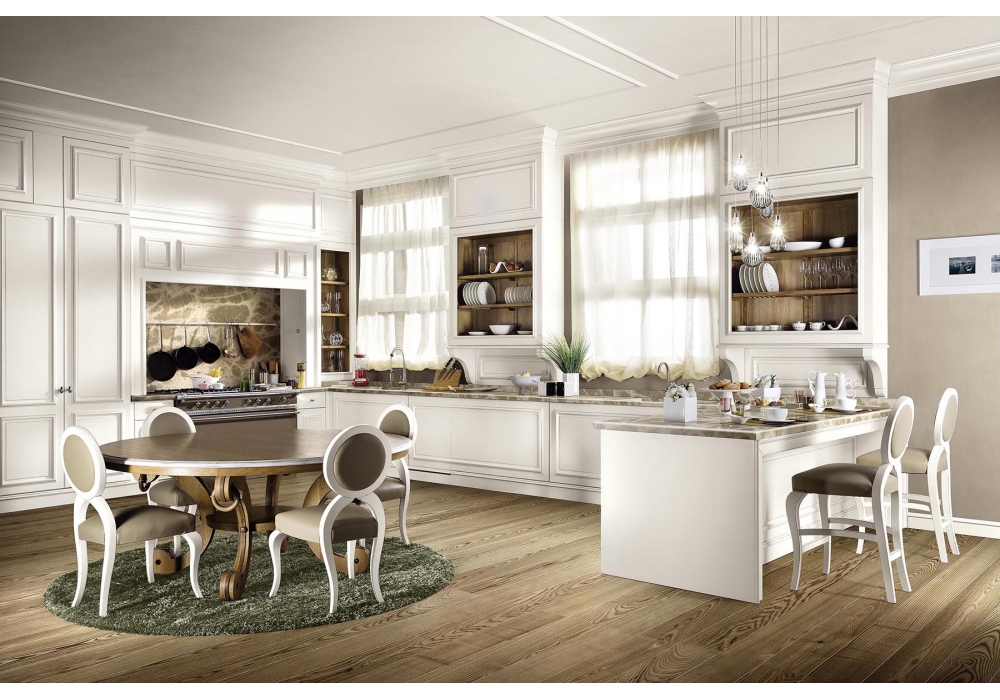 Floral conçu par L'Ottocento est une cuisine qui s'offre comme un hommage clair à une élégance classique et romantique. Disponible en différentes finitions et compositions.