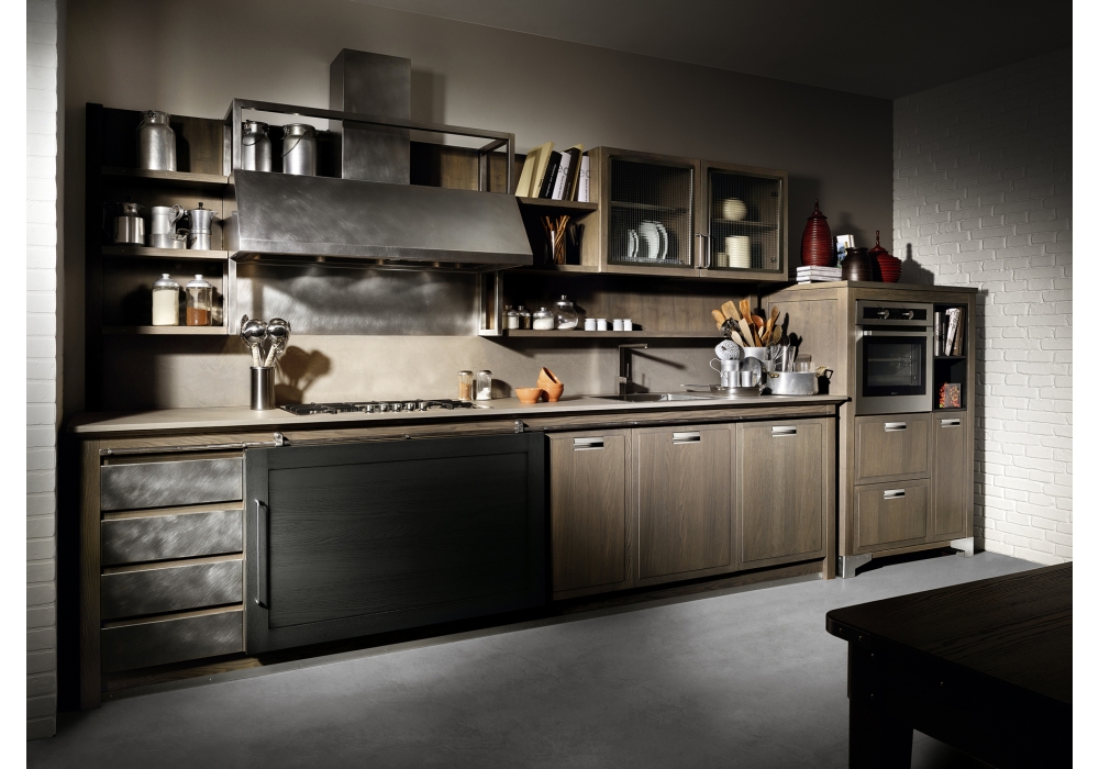 Industrial Chic conçu par L'Ottocento est une cuisine qui ressemble au style post-industriel revisitant en clé élégante et domestique. Personnalisable avec différentes compositions et finitions.