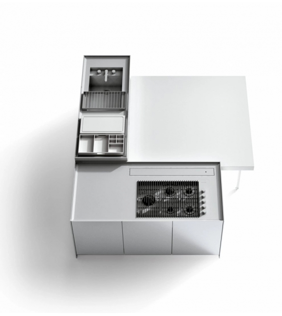 Combine conçu par Piero Lissoni pour Boffi est une cuisine composé de monoblocs qui peuvent être combinés ensemble pour créer des îlots compacts. Le programme de cuisine Combine crée un jeu complexe avec des éléments simples.