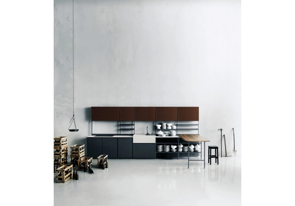 Salinas conçu par Patricia Urquiola pour Boffi est une cuisine avec la structure tubulaire en métal, les portes avec le cadre en aluminium et les panneaux en différentes finitions et les surfaces de travail en des matériaux exclusifs. Disponible en différentes compositions et matériaux.