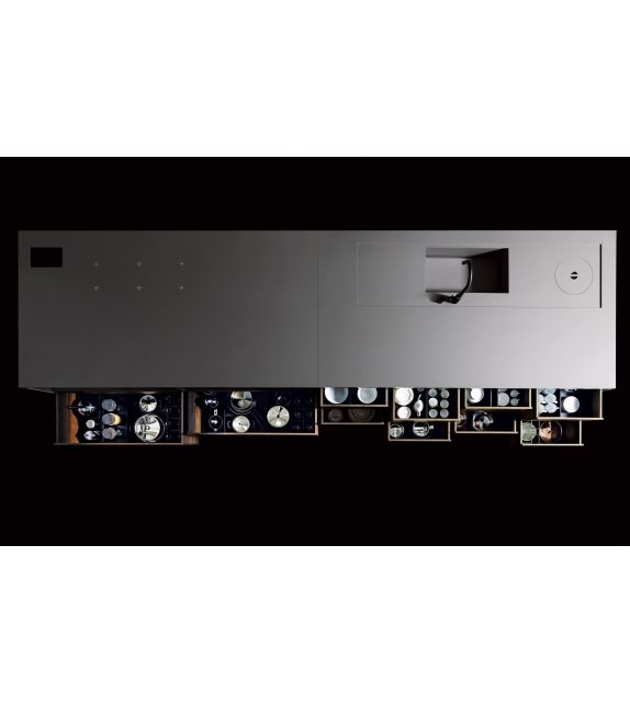 Code conçu par Piero Lissoni, est un modèle de cuisine dans lequel des matériaux, des finitions et des types de conteneurs hautement personnalisés entrent en jeu. Large choix de variantes de finitions en bois, métal et pierre : bois d'origine exclusive extraits de rivières avec des milliers d'années d'histoire, métaux traités manuellement avec des finitions spéciales, pierres naturelles raffinées et finitions uniques.