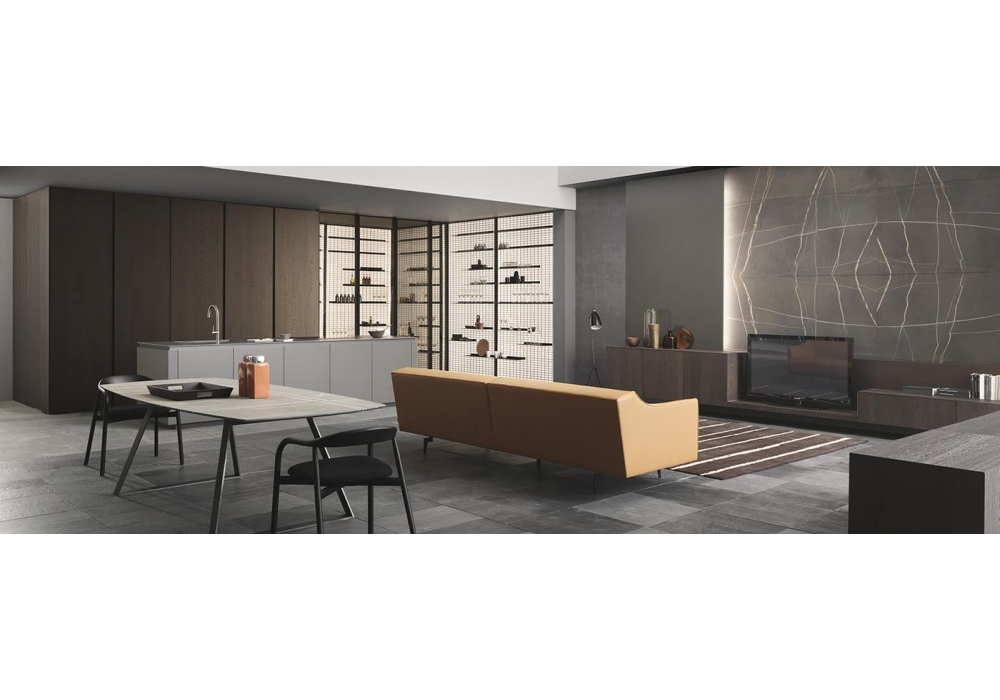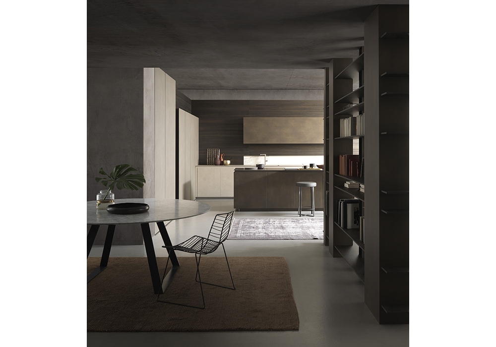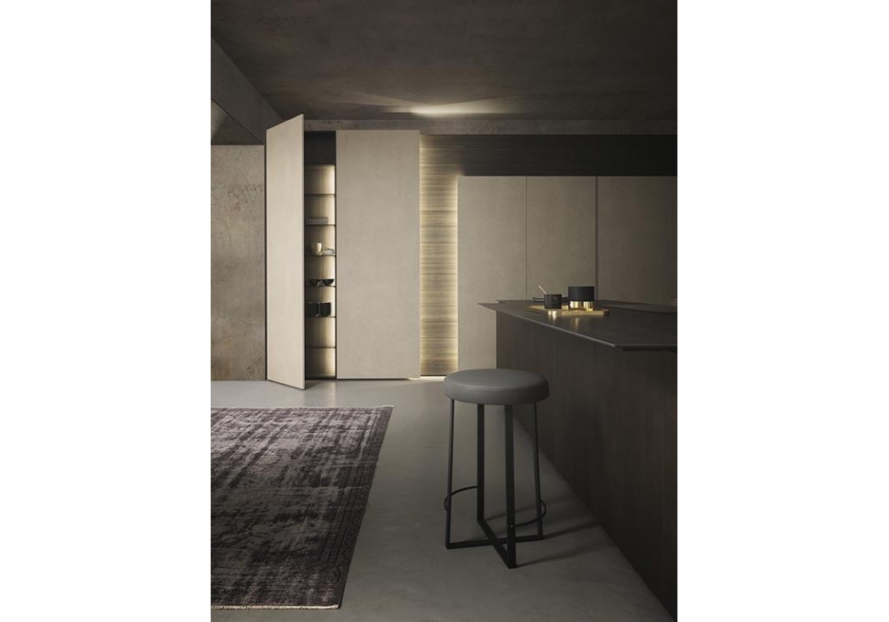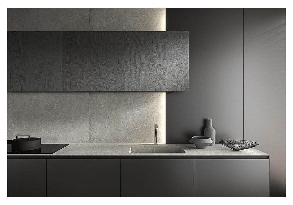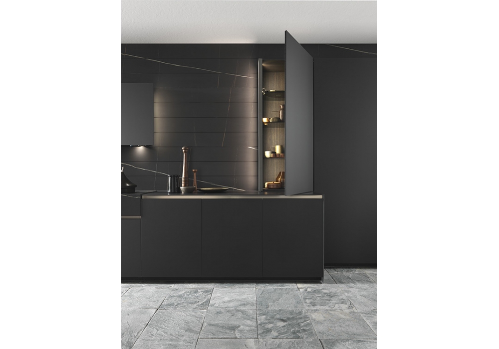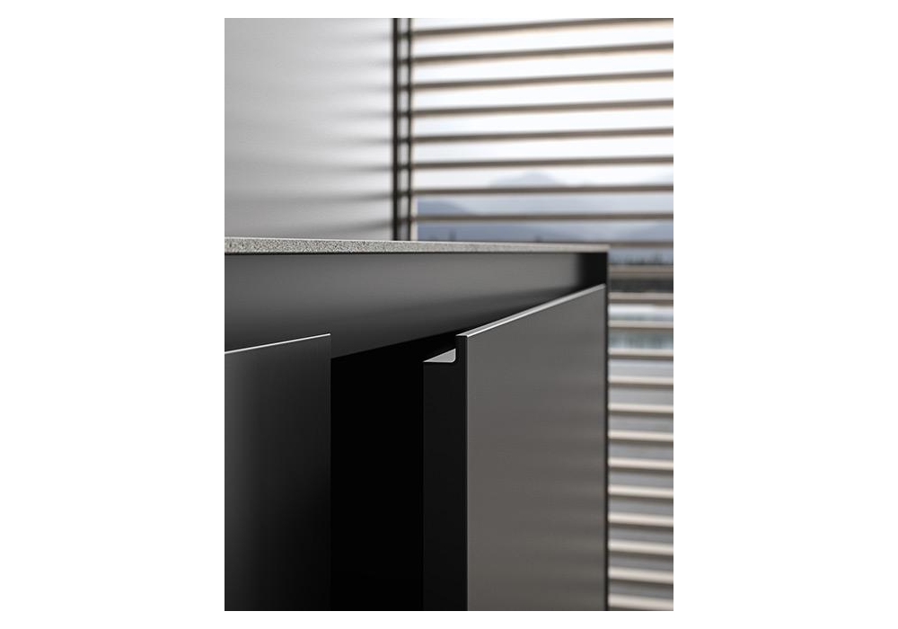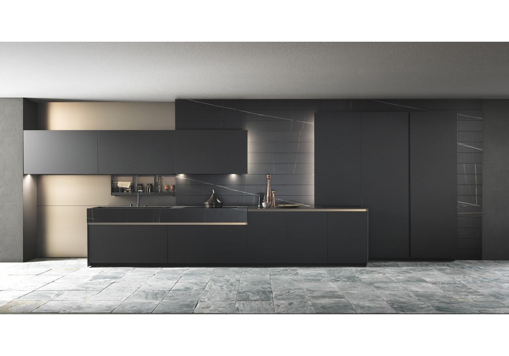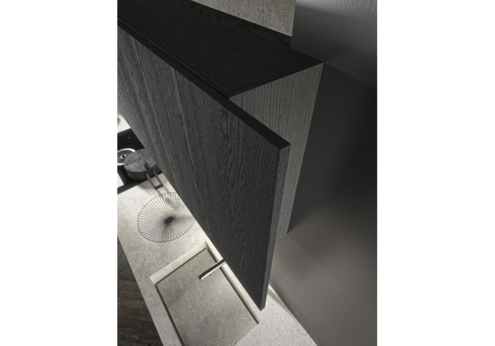 Skill conçue et produite par Modulnova est une cuisine linéaire et minimale, créée avec des matériaux spécifiques (milltech, grès, fenix et autres) qui permettent de concevoir l'environnement en l'adaptant à tous les besoins. La panisola, les façades et les côtés ont de fines épaisseurs et dans des matériaux différents. La colonne est fonctionnelle pour les petits appareils ; plan de travail, évier, boiserie et tiroirs confirment la haute qualité des détails. Contactez notre Service Client pour créer votre Skill, avec les fonctionnalités que vous préférez.