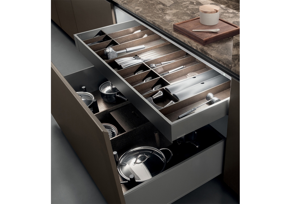 Soul 02 conçue par Ernestomeda est une cuisine disponible dans un vaste choix de matériaux et de finitions rendant chaque projet unique. La fusion entre la cuisine et le salon est rendue fluide grâce à des éléments modulaires tels que le système d'étagères Medley qui peut être utilisé dans de multiples configurations.